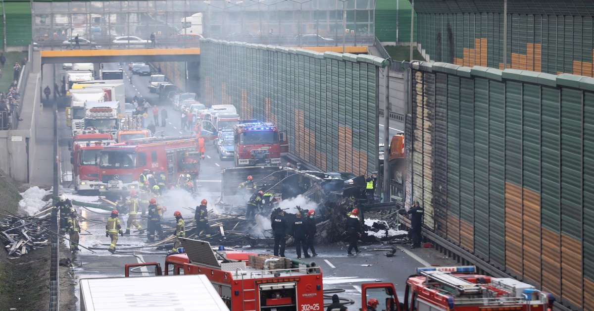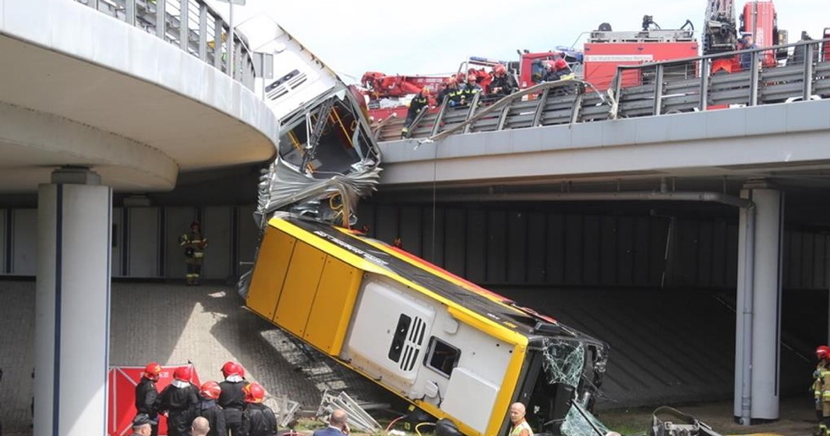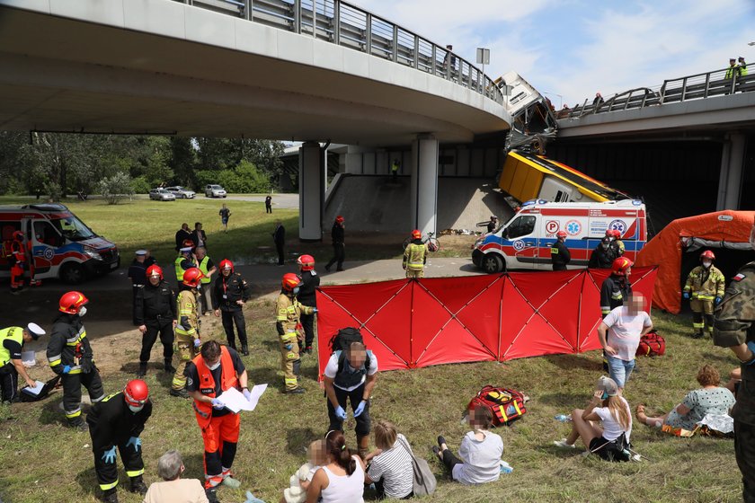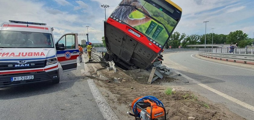 Autobus przebił bariery na trasie s8 i spadł z wiaduktu na wisłostradę.